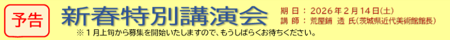 友の会会員特典!について再確認です。①図録購入 70歳以上500円引き、70歳未満300円引き、②レストラン食事100円引き・ドリンク50円引きとなります。会員証の呈示をお願いします。 |